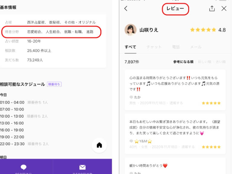 を確認することで、あなたの悩み相談に合致した占いをしてもらえるか?もわかります。