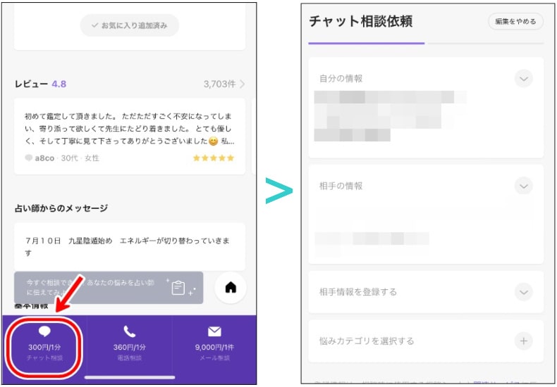 - どの占い方法が良いか迷っちゃう人・初めての人は「チャット相談」