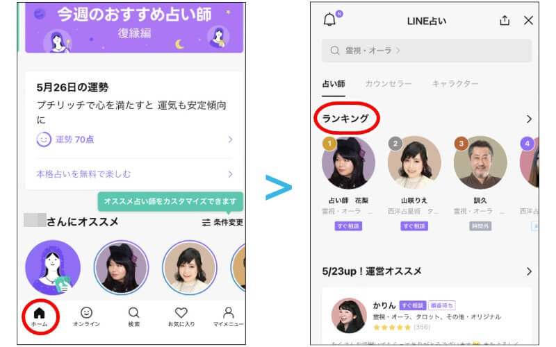 LINE占いの中には、「占い師ランキング」が設置されています。